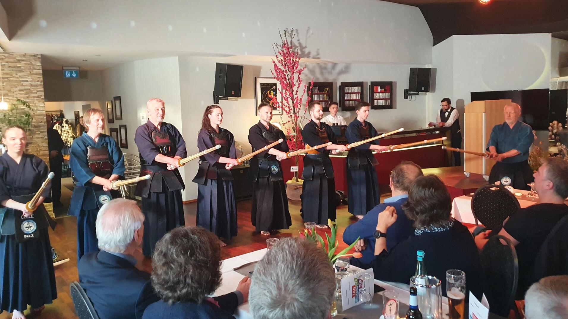 Am Freitag den 04.05.2024 ist die Abteilung Kendo des TuS Celle 92 e.V. bei der Sportlerehrung des Landkreises Celle aufgetreten. Dort wurden vor den erfolgreichen Sportlerinnen und Sportlern im Landkreis Celle die Kata (eine Übungsform), Suburi (Schwungübungen mit dem Shinai), Aufwärmübungen für den Kampf und ein Kampf zwischen Übungsleiter Klaus Grelewicz und seiner Schülerin Marlene Pelz aufgeführt. Der Auftritt erfreute sich großem Interesse beim Publikum und konnte die Bekanntheit dieses Sports im Landkreis Celle steigern.