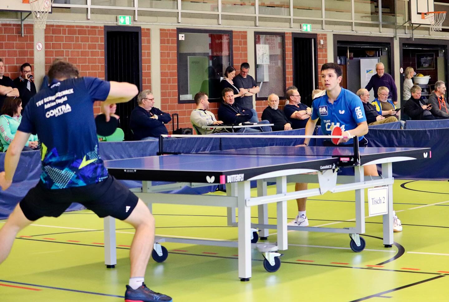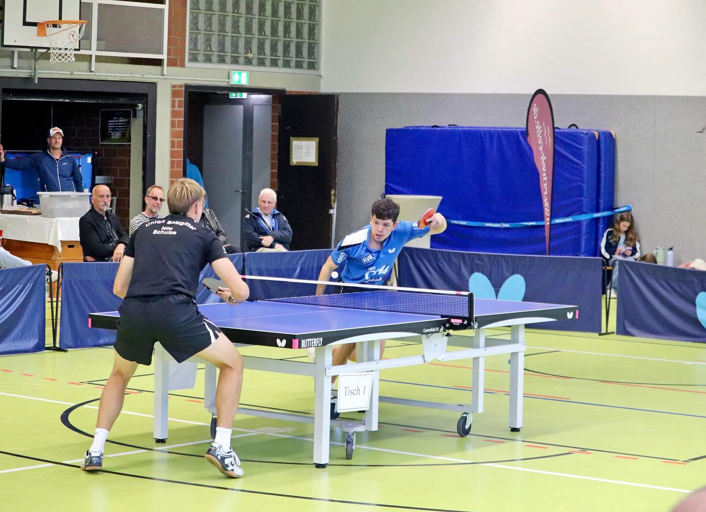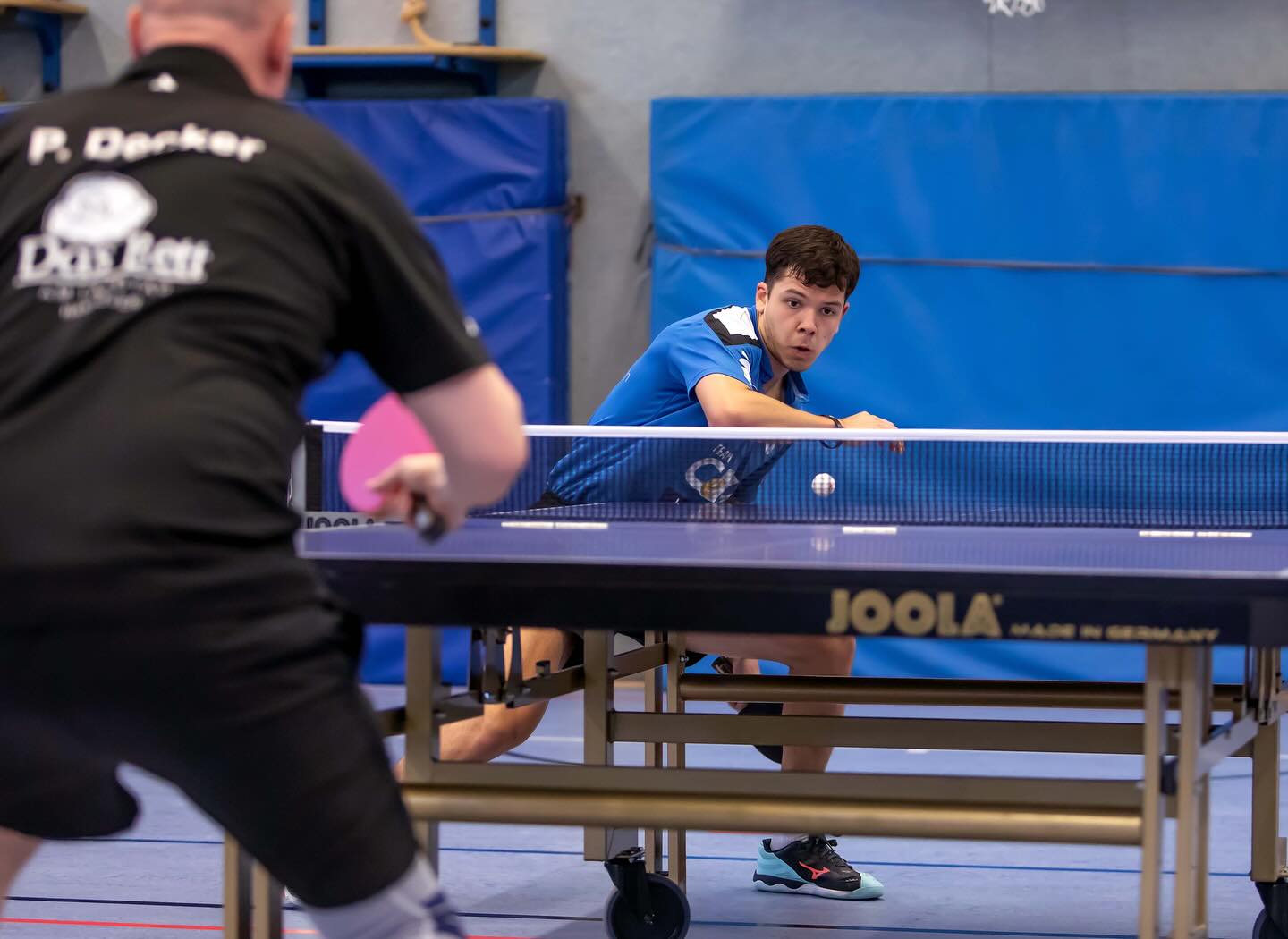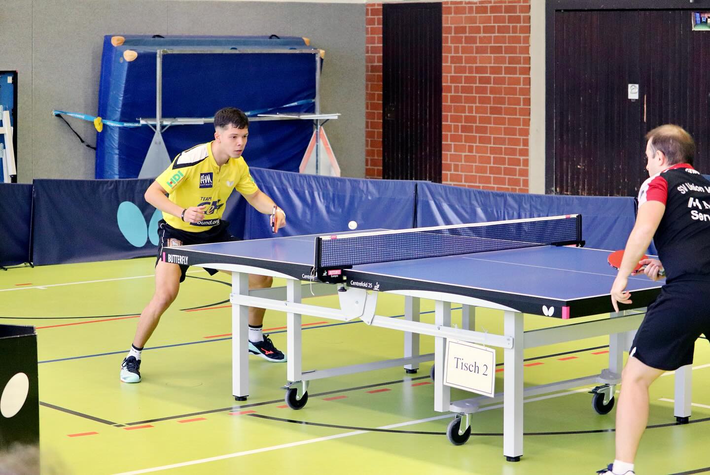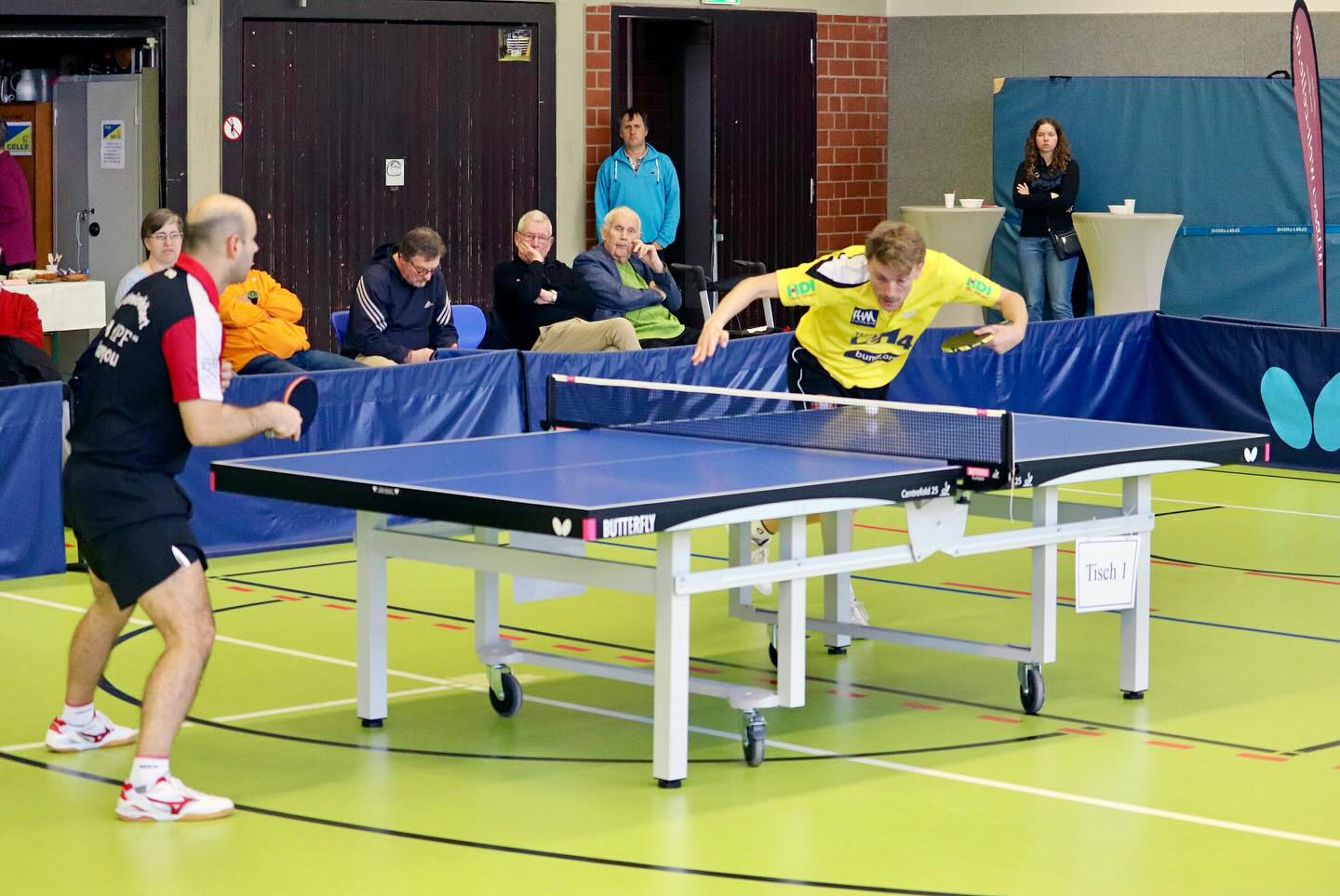 Hierbei startete unser Youngster und Mitglied der Oberligamannschaft zuerst mit 5:0 Spielen bei lediglich einem Satzverlust, was ihm den souveränen Gruppensieg samt direkter Qualifizierung für das Viertelfinale bescherte. Anschließend bezwang er Felix Fuchs vom DJK Krebeck mit einem ungefährdeten 3:1 und zog ins Halbfinale ein. Dort stand er dann seinem Internatskollegen und Topgesetzten Alexander Uhing vom Hundsmühler TV gegenüber, der sich an diesem Tag als zu stark erwies und für ihn die Endstation des Turniers bedeutete.